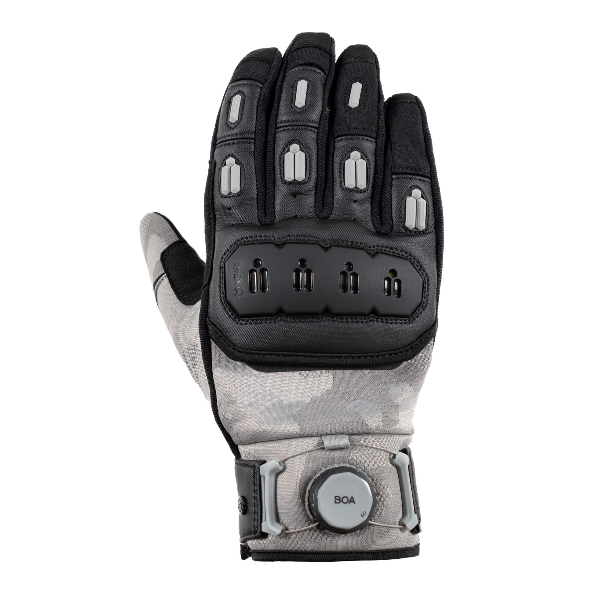 Vylepšený vzhled rukavic zahrnuje nové lisované plastové ochranné prvky na prstech pro větší odolnost proti oděru a zcela nový plastový plovoucí chránič Knox Micro-Lock na hřbetu ruky. Stylový tmavý reflexní potisk chrániče je během dne matný, ale odráží se pod světly.